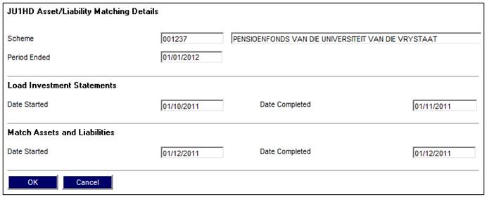 The following functionality allows for the capturing of the progress of the asset / liability matching process.