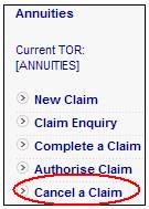 To cancel a claim, from the Claims menu, select Cancel a Claim from the sub-menu on the left, then select the required member as described under