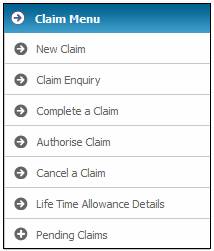 If the scheme uses the flexible benefit rules, the Claim Menu will display the Life Time Allowance Details option for selection.