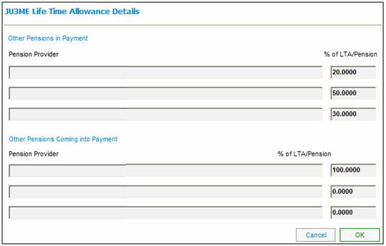 Life Time Allowance Details makes provision for the capture of values from external sources including other funds within the UK, at the time when a claim is processed.