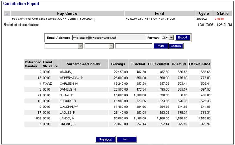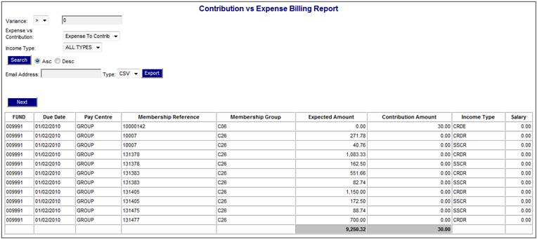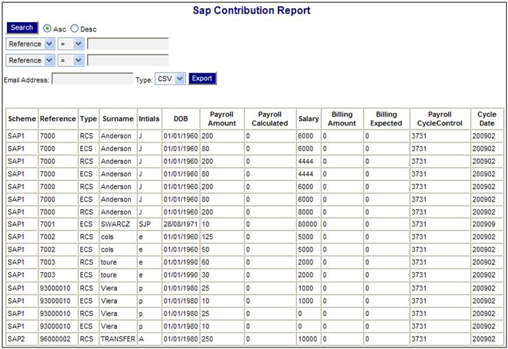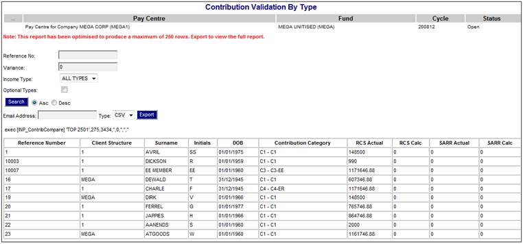 This report displays various totals relating to the members' salaries and contributions. The types of totals displayed may differ from scheme to scheme, depending on how they have been coded.