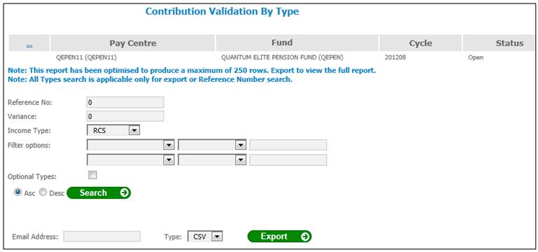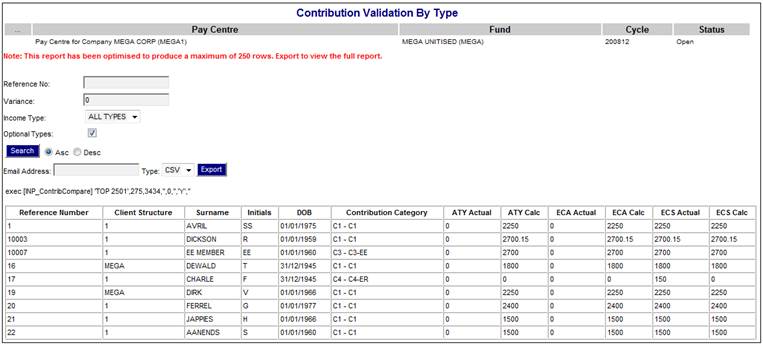 This facility allows the Calculation Validation report to be viewed by Income Type.