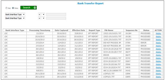 The system will display the following Information per transaction