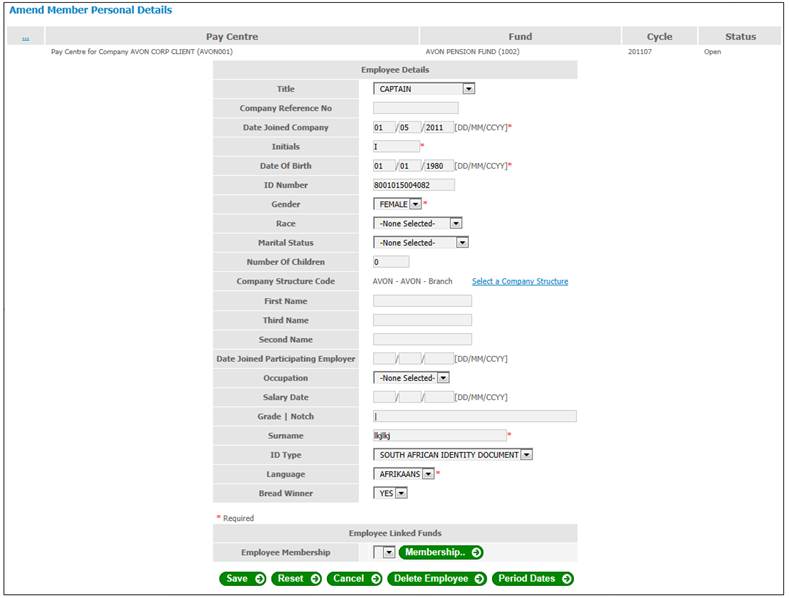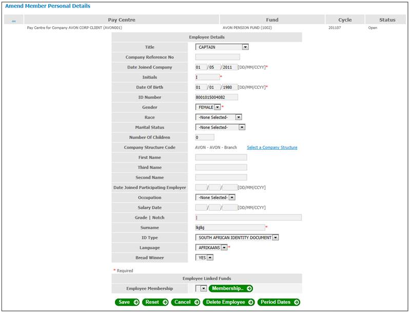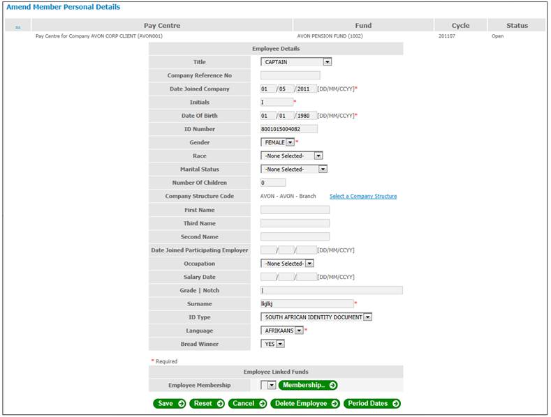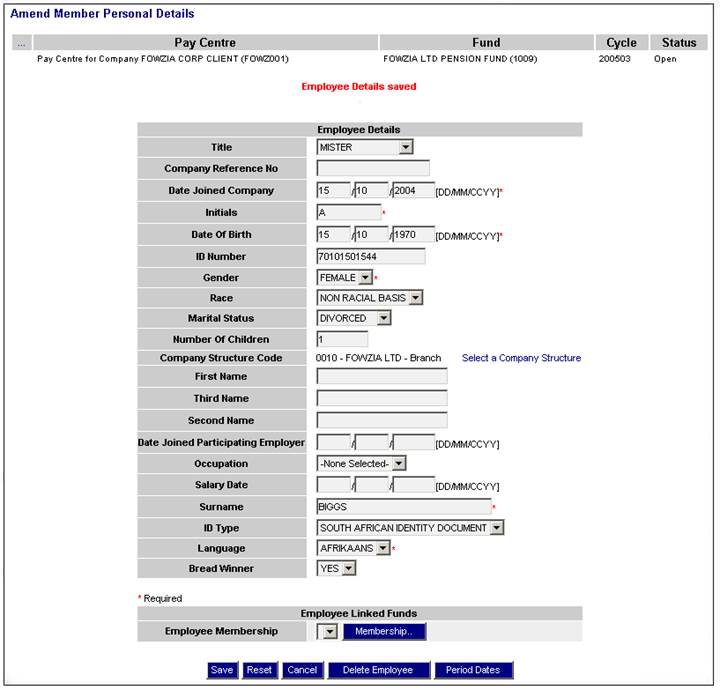 Click SAVE or click EMPLOYEE… to return to the Amend Member Personal Details screen.