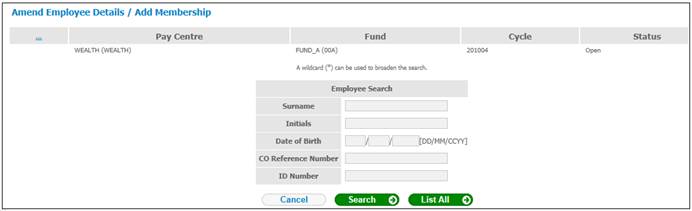 Click LIST ALL and click on the employee. The Amend Member Personal Details screen is displayed.