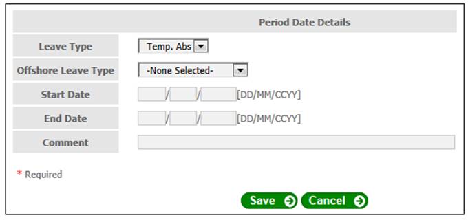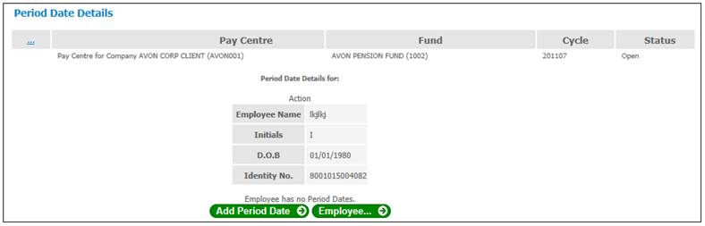 Click PERIOD DATES. The Period Date Details screen is displayed.