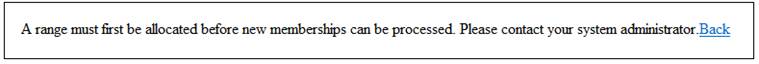 A range must first be allocated before new memberships can be processed. Please contact your system administrator. Back