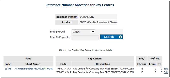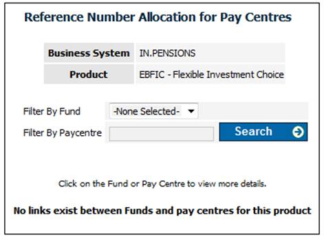 Capture the Fund number in the Filter by Fund field. The Pay Centres for the Fund are displayed on the screen.