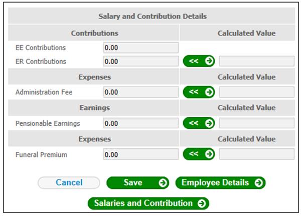 The calculated value will be displayed in both the Calculated Value and the relevant Salary and Contribution Details columns.