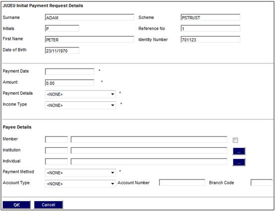 The JU2EU Initial Payment Request Details screen will be displayed.