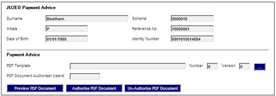 To create the payment letter, click PAYMENT LETTER. The JU2EO Payment Advice screen will be displayed.