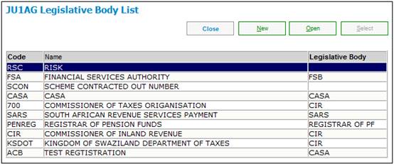 To add a new legislative body, click NEW. The JU1AG New Legislative Body Details screen will be displayed.