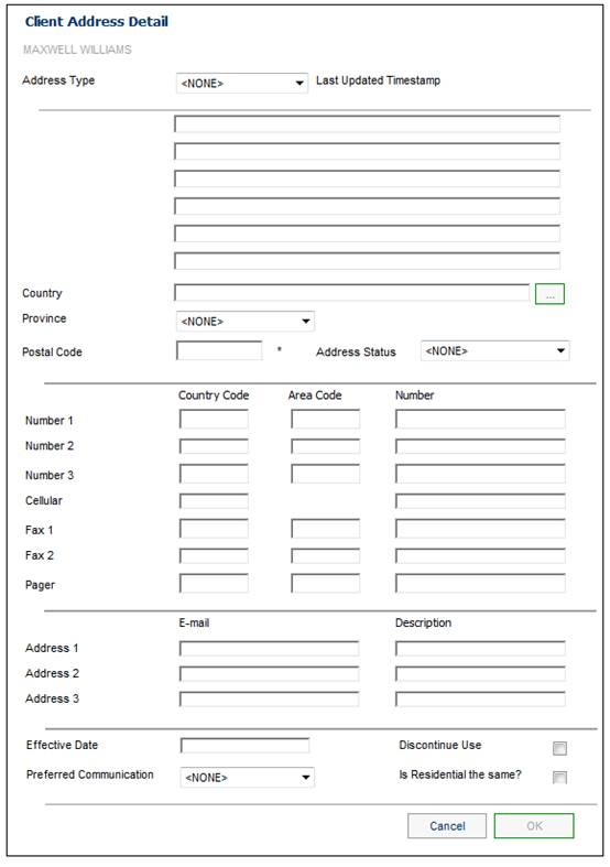 If each address type is different, a new Client Address Detail screen must be opened for each address type that is different.