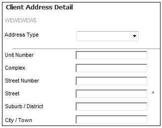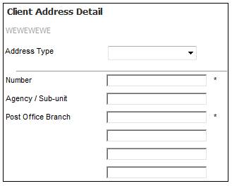 Note: If the Type of Address selected on the Client Address Detail screen is one of the following, the system will display the field names for each line of the address: