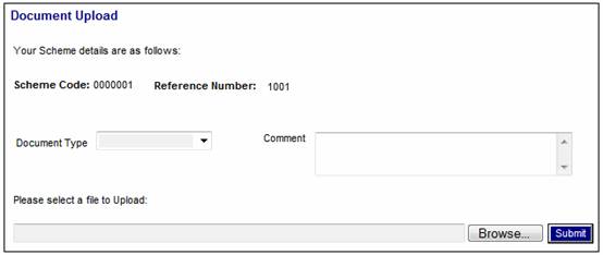 Select a type of document to be uploaded from the drop-down, e.g. Claim Form. |