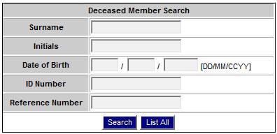 To search for a deceased member, capture one or more of the following search criteria in the appropriate fields: