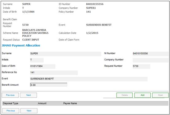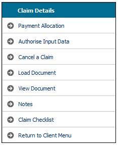 From the Benefit Claim Details screen, select Payment Allocation from the sub-menu menu on the left.