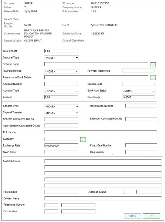 Note: If the Sub-Category for the Benefit Event is not DIVORCE, the system will default the value to the name and initials of the member and the this field will not be enabled for update. |