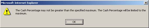 Note: If the cash percentage is less than 100, an error message will be generated, requiring this field to be completed. Refer to Cash Percentage above. |