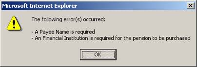 Note: In respect of retiral benefits, if a cash amount is captured, and the maximum cash percentage (refer to the Batch Parameter for Commutation) is less than 100, the system will calculate the amount captured as a percentage of the benefit quote amount. If the percentage calculated is greater than the Batch Parameter value, the following warning message will be displayed: |
