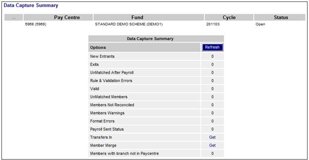 The View Data Capture Summary screen will not be displayed if either the Global Parameter or the Scheme Parameter for WORKFLOWENABLED has been set and the Parameter is equal to YES. This is because the Contribution Process has been switched off on Core and can only be accessed through My Work.