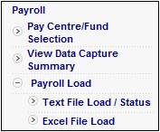 alongside Payroll Load on the sub-menu on the left. Select Text File Load / Status when the additional options are displayed.