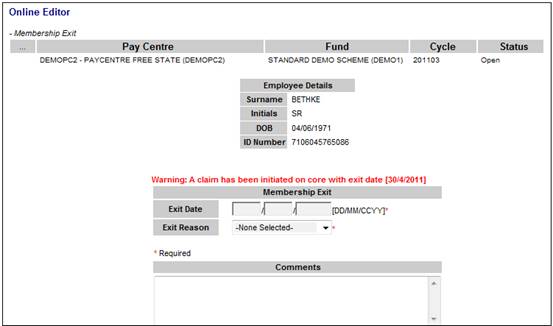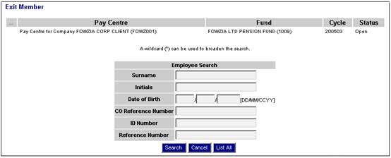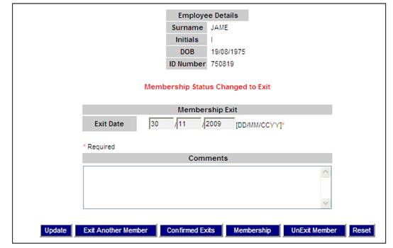 To exit a member, from the Data Capture menu, select Exit Member from the sub-menu on the left. The Exit Member screen will be displayed.