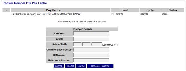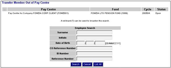 Select the required pay centre from the drop-down list.