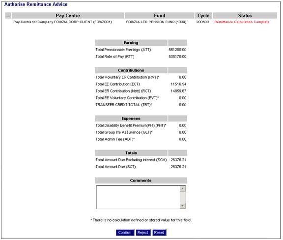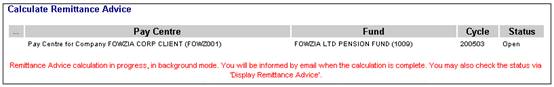 Click Calculate Remittance Advice below Remittance. The Calculate Remittance Advice screen will be displayed.
