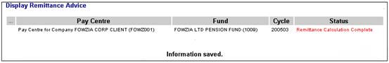The Display Remittance Advice screen will be re-displayed.
