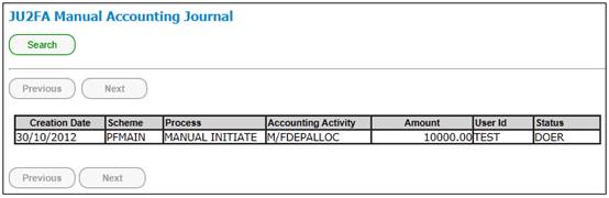 From the JU2BK Manual Accounting Journal screen, highlight the required transaction in a DOER status and select Authorise/Edit Accounting Journal from the sub-menu on the left.