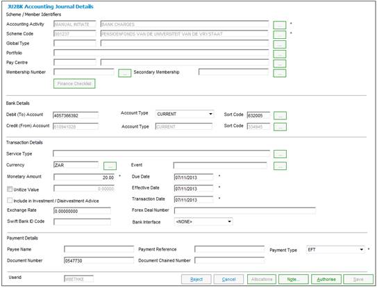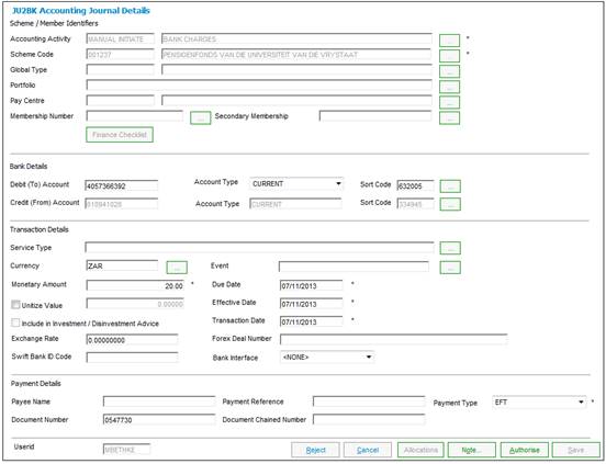 The JU2BK Accounting Journal Details screen will be displayed.