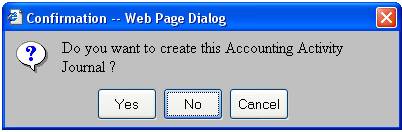 Click YES to confirm that an accounting activity journal must be created.