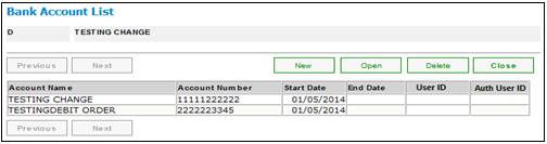 If any of the bank account fields have been updated and CLOSE is selected on the Bank Account List screen, the system will update the Activity Name of the Service Request to UPDATE BENEFICIARIES and flow back to the Service Request.