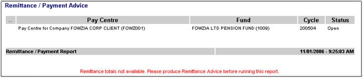 If the remittance has not yet been produced, a message will be displayed (see below). You will only be able to see the report once the remittance has been done.