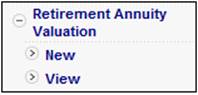 alongside Retirement Annuity Valuation on the sub-menu on the left. Additional options will be displayed.