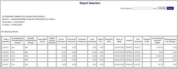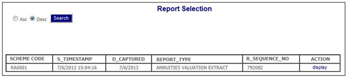 Click View below Retirement Annuity Valuation. The Report Selection screen will be displayed.